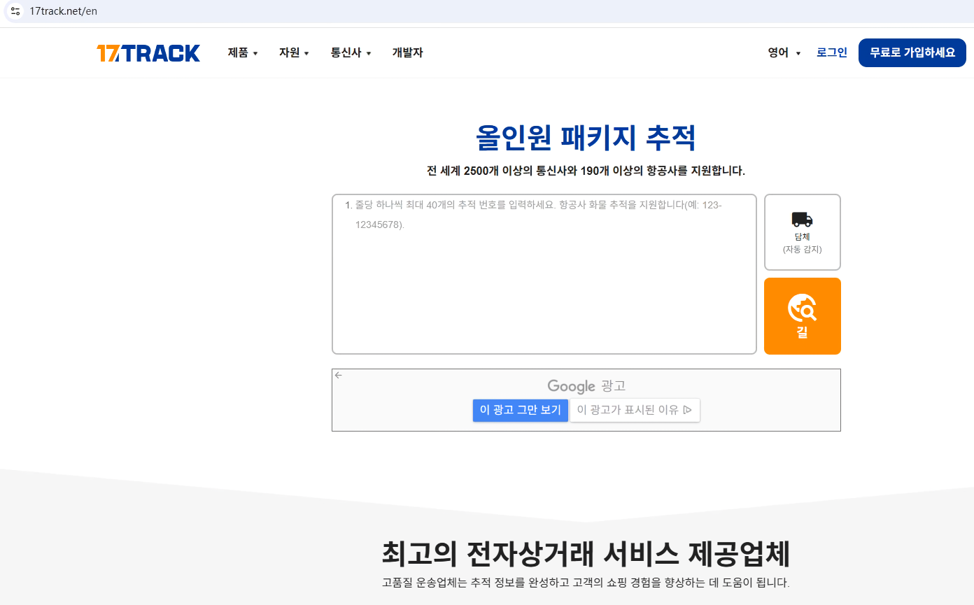 - 아래와 같은 화면이 뜨면, 송장번호를 입력하고 검색하기를 누릅니다.